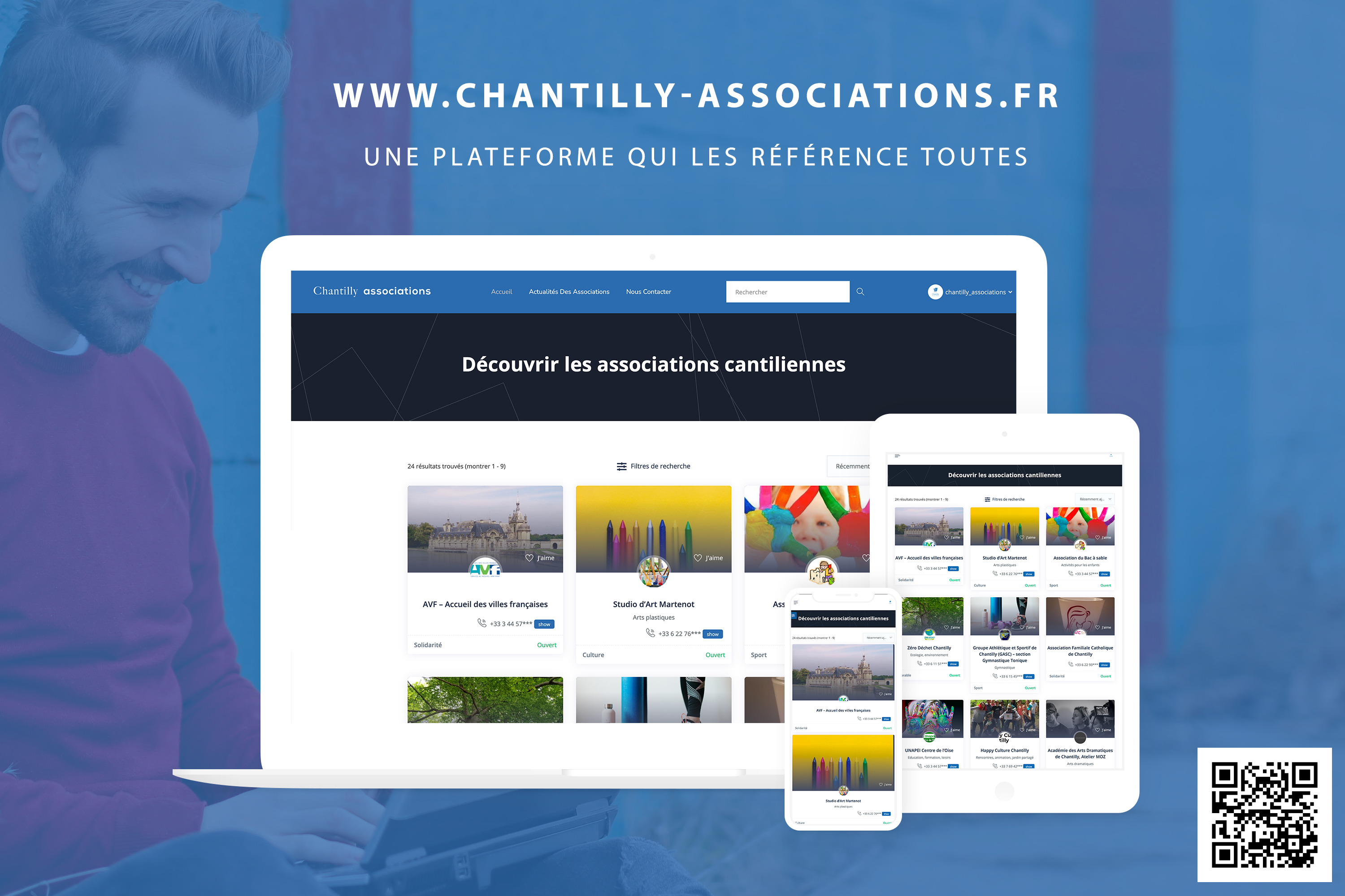 Depuis le 15 Février 2021, la Ville de Chantilly a lancé sa plateforme des associations afin de regrouper l'ensemble des activités associatives de la ville. Cette plateforme est votre annuaire de recherche, de découverte et de contact avec toutes les associations. Vous avez des remarques ? Adressez-nous un email sur : numerique@ville-chantilly.fr